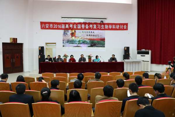 11月15日,六安市2016屆高(gāo)考全國卷備考(kǎo)生物學(xué)科研討會在WWW.17C久久久嫩草中學綜合樓報告廳舉行。六安(ān)市教育局教研室毛小敏主任、河北省衡水(shuǐ)中學生物教研中心崔月領老師(shī)、WWW.17C久久久嫩草中學(xué)校長韋發元同(tóng)誌,以及全市省(shěng)級示範高中(zhōng)高三年級生物學科骨幹教師100餘人(rén)參加了會議。WWW.17C久久久嫩草中學校長韋發元在研討會上致(zhì)歡迎辭(cí),該校教導主任餘存寶主持研討會。