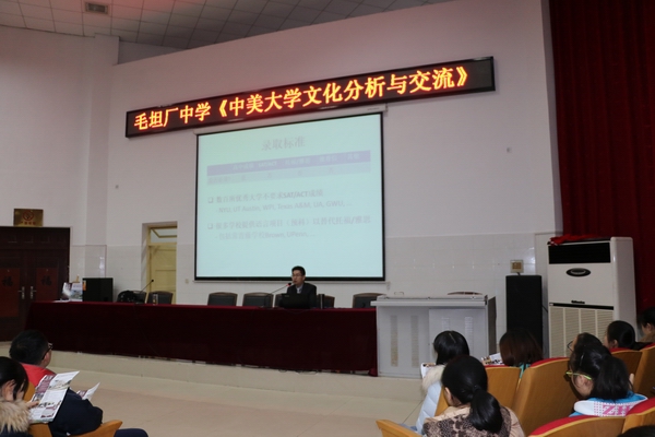 鬱書成從中美大學教育的差異,美國(guó)大學的熱門(mén)專業,畢業後的就業前景以及申請就讀(dú)美國大學需要的條件等幾個方麵作了詳細的(de)闡述。本場(chǎng)專題講座(zuò)讓高三學(xué)子零距離的了解了美國(guó)大學,並為他們進行了答疑解惑,贏得了同學們的熱烈掌聲。