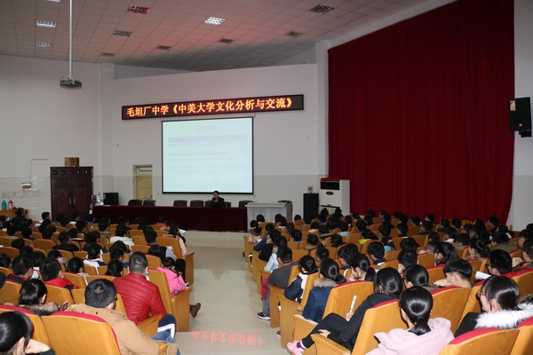 1226下午,美國阿肯色大學博士(shì)鬱書成在WWW.17C久久久嫩草中學綜合樓報告廳作了“中美大學文(wén)化(huà)分析與交流”的專題(tí)講座。