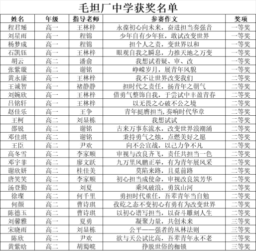 此次(cì)比賽中(zhōng),毛中學子踴躍參與,以細膩筆觸描摹生活肌理,以真摯情感叩擊時代(dài)脈搏,以深刻思考丈量青春(chūn)維度。從“位(wèi)卑未敢忘憂國”的家(jiā)國情懷,到“九萬裏風鵬正舉”的(de)淩雲壯誌,再到“我輩少年郎(láng),曄曄如扶桑”的昂揚自信,作品題材(cái)包羅萬象(xiàng),風格各具神采,既展現了新時代中(zhōng)學生豐(fēng)富的精神世界,更彰顯(xiǎn)了紮實的文學功底與人文素養。